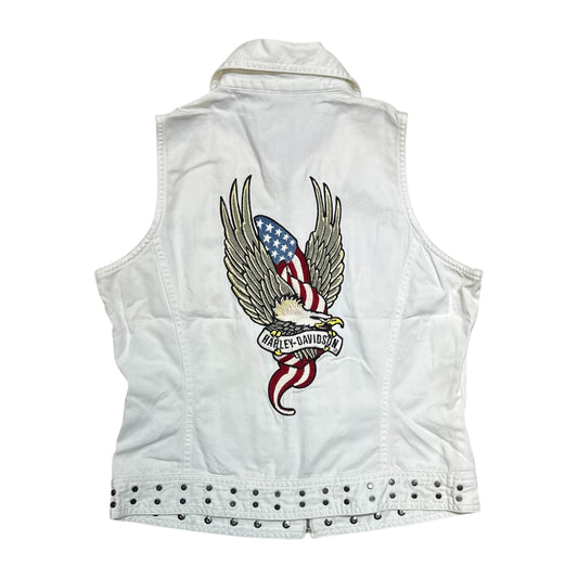 Harley Davidson 90s American Flag Eagle Embroidered Studded Vest