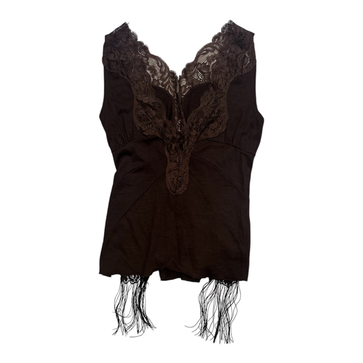 V-neck Lace Trim Fringe Vest
